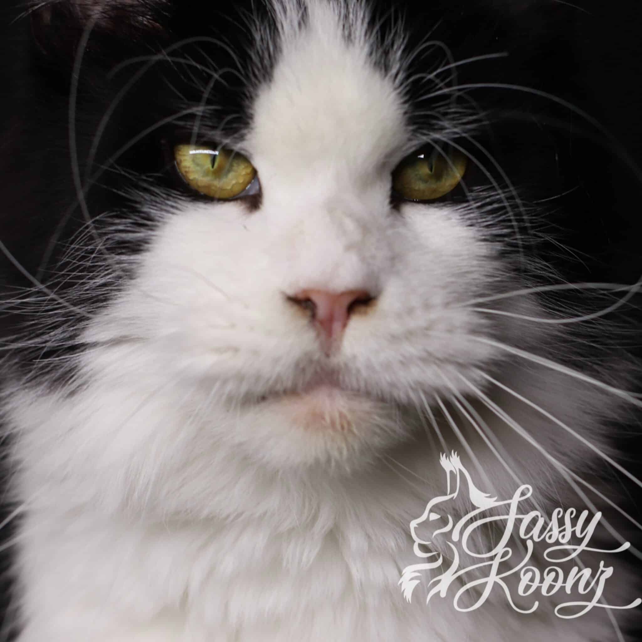 Sassy Koonz Cotton Candy is a fierce looking Maine Coon, that’s as soft and fluffy as cotton candy. She’s named after a Yungblud song.